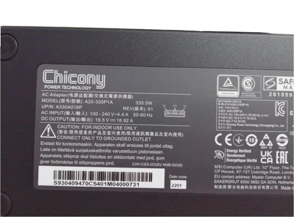 Originale 19.5V 16.92A 330W MSI ADP-330CB BJ Alimentatore Adattatore + Cavo